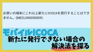技術系【備忘録】モバイルICOCAで”これ以上新たにICOCAを発行することはできません”と表示される(エラーコードMECL000050009) はじめに おま環(お前の環境だけで起こっている)の可能性がある。一応自身が試して問い合わせて解決方法を見つけたが、全ての人がこの方法で解決できるとは限らない。以下の内容を照らし合わせ、試しても無理だった場合は潔くモバイルICOCAお問い合わ...2023.04.20技術系